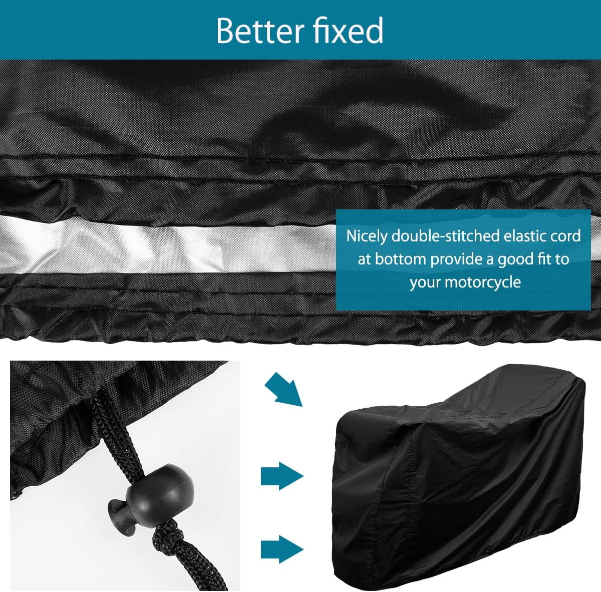 Fitment Features: Elastic drawstring with toggle for secure base fit