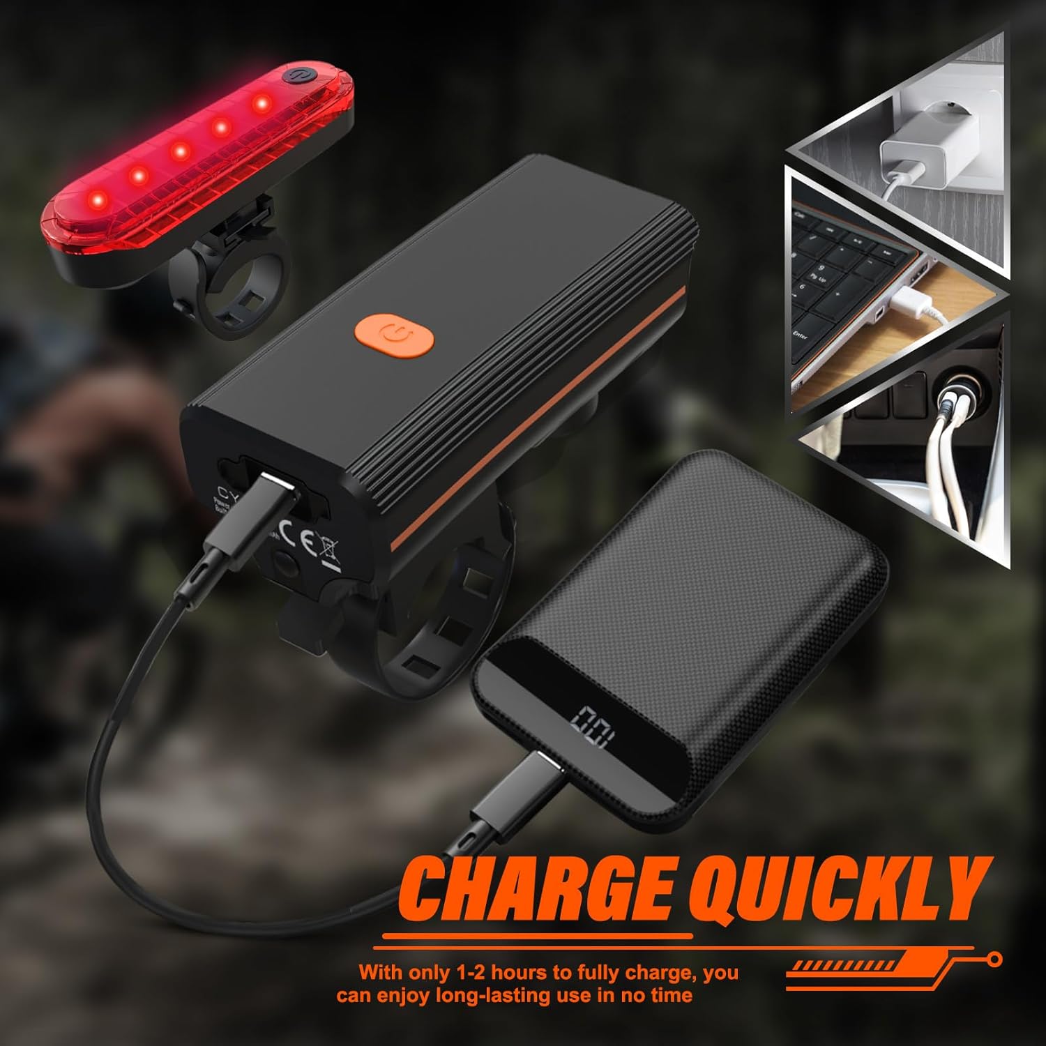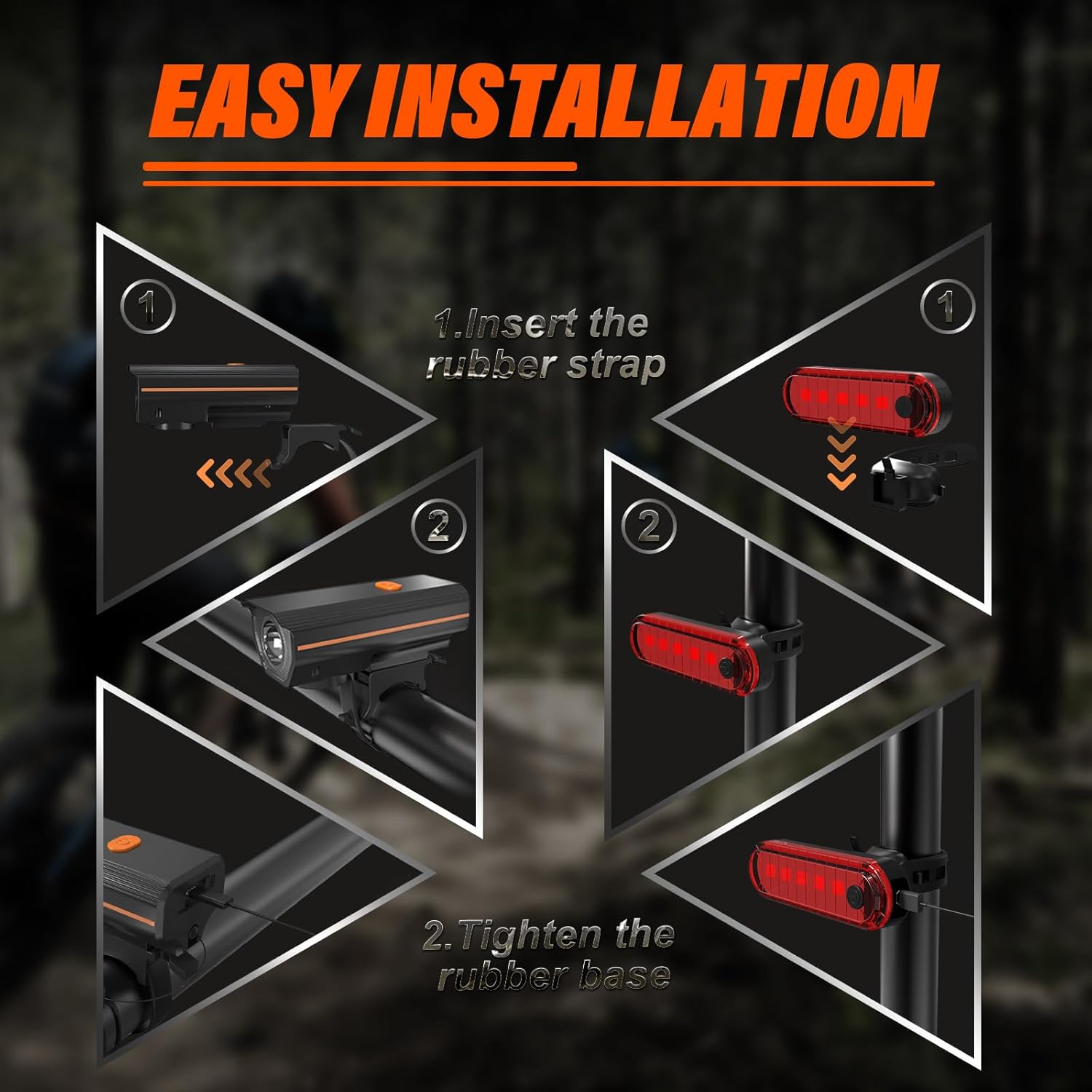 Easy Installation: Bike lights are designed with quick release features, making installation a breeze. You can easily detach the bike light to charge them quickly. With only 1-2 hours to fully charge, you can enjoy long-lasting use in no time