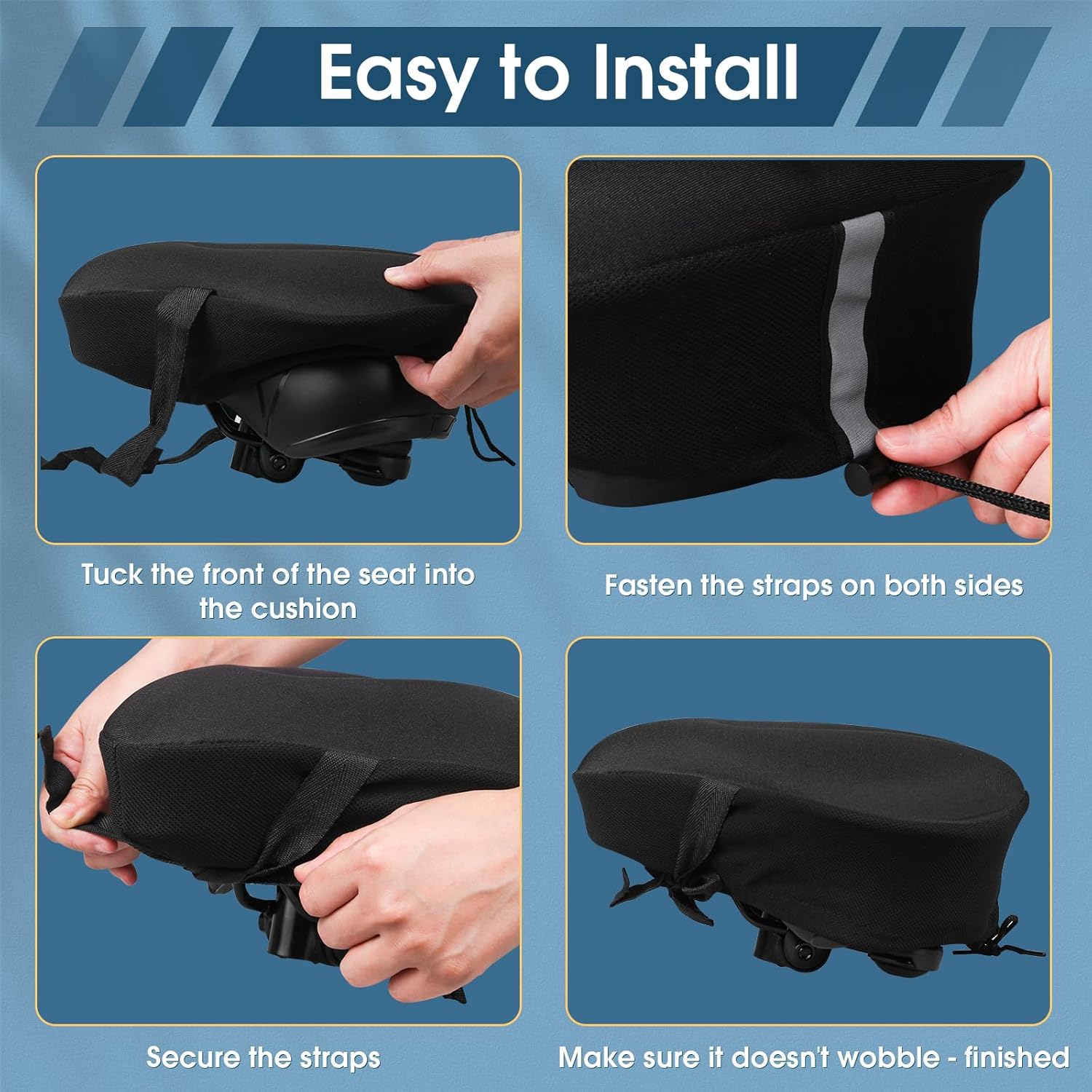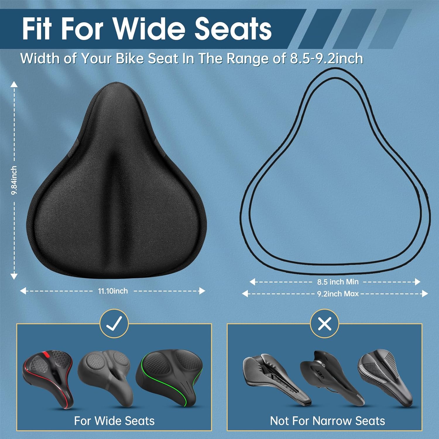Wide, Ergonomic Design: Fits most standard bike saddles, offering optimal comfort and support for cyclists of all sizes. Perfect for mountain bikes, road bikes, commuter bikes, and stationary bikes.