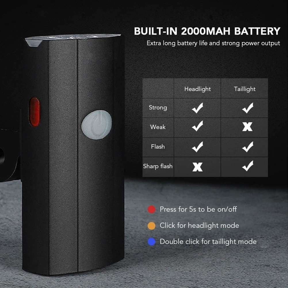 Feature a one-touch switch, 3 working modes serve for different needs. Front light + Taillight +Side light for added visibility and safety at night.