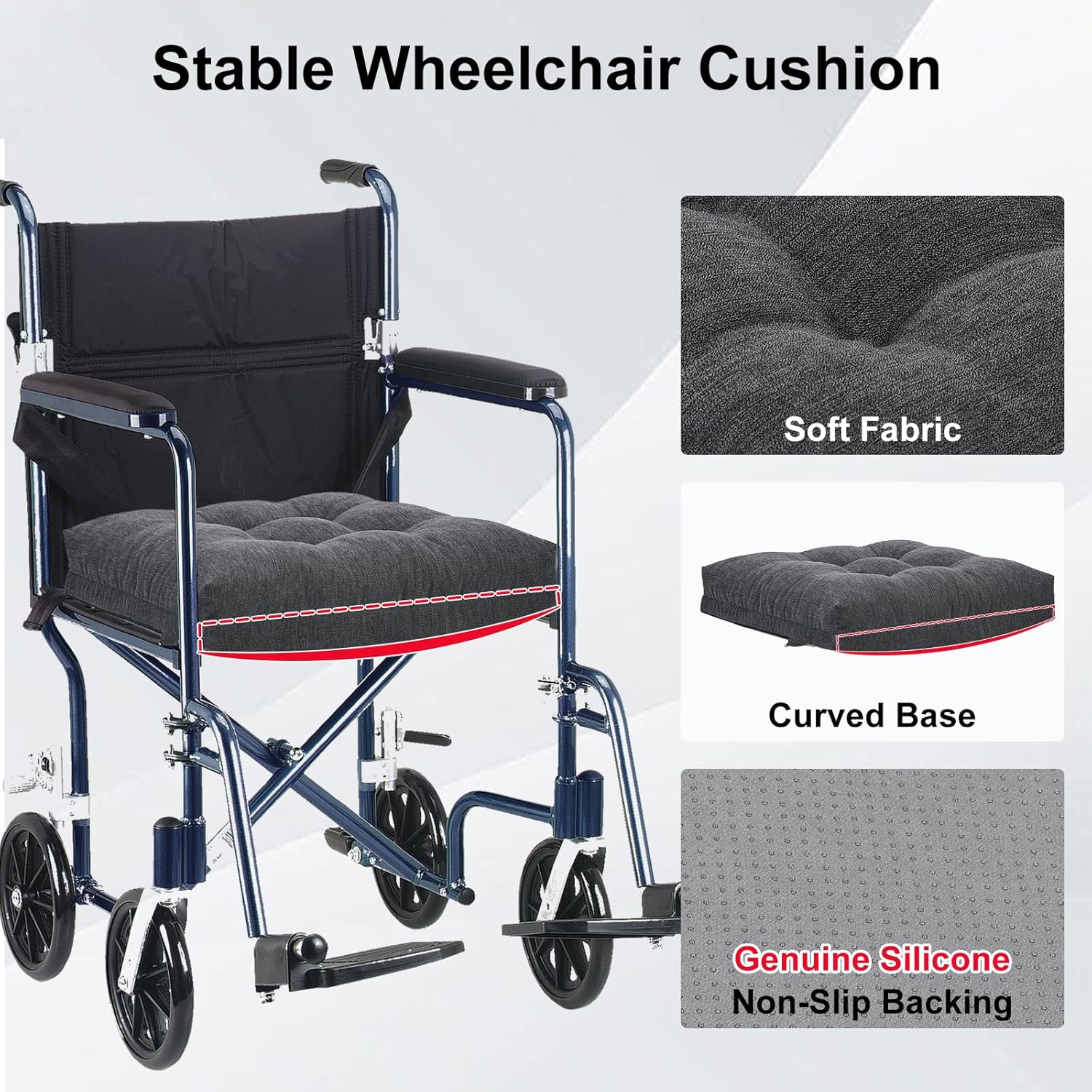 Curved Bottom Design – Fits securely on wheelchair seats for added stability