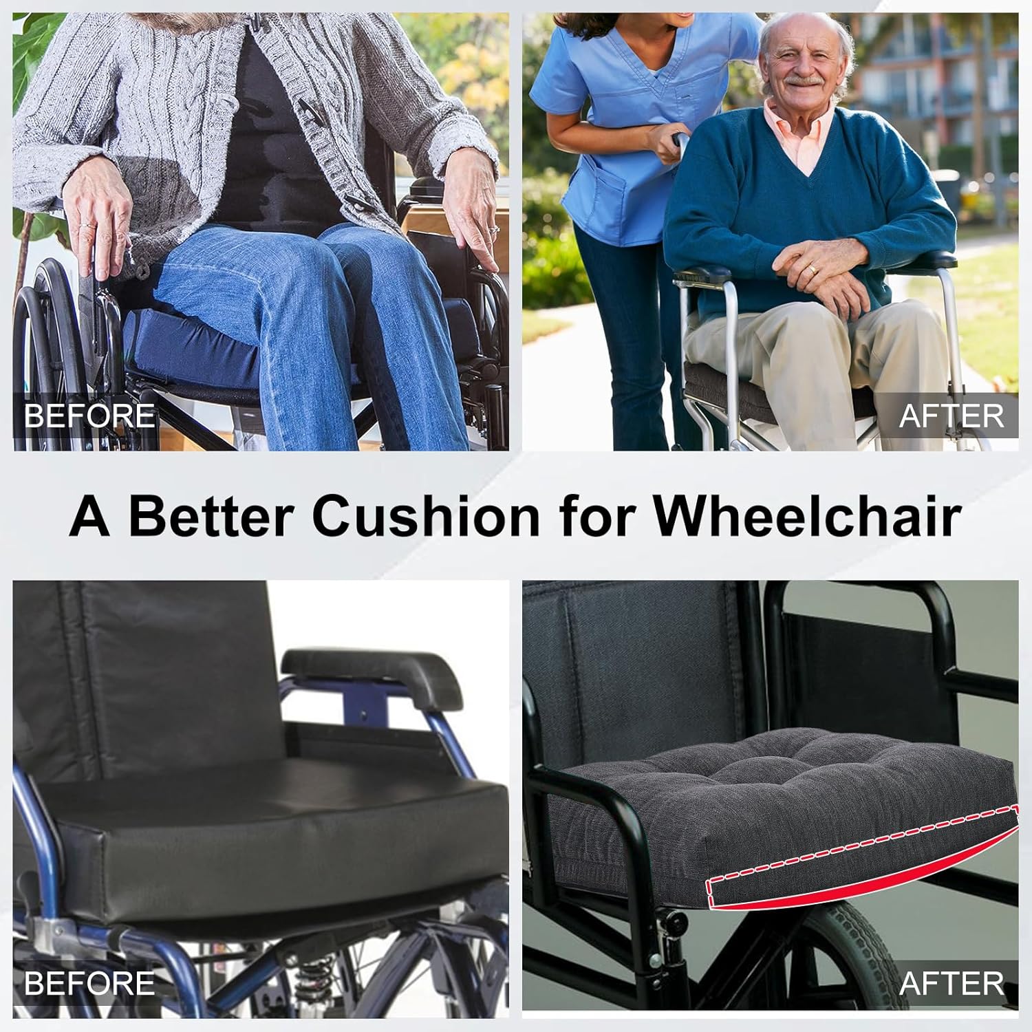 The baibu Memory Foam Wheelchair Cushion is designed to deliver long-lasting comfort, stability, and pressure relief for wheelchair users and seniors. Featuring a dual-layer anti-sagging construction and a curved base for a better seat fit, this cushion evenly distributes body weight to help reduce pressure points on the tailbone, hips, and lower back.